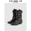 Spitze dünne kurze Stiefel Martin Stiefel Damen neu Herbst und Winter Retro dicker Absatz Ritterstiefel plissierte Western Stiefel