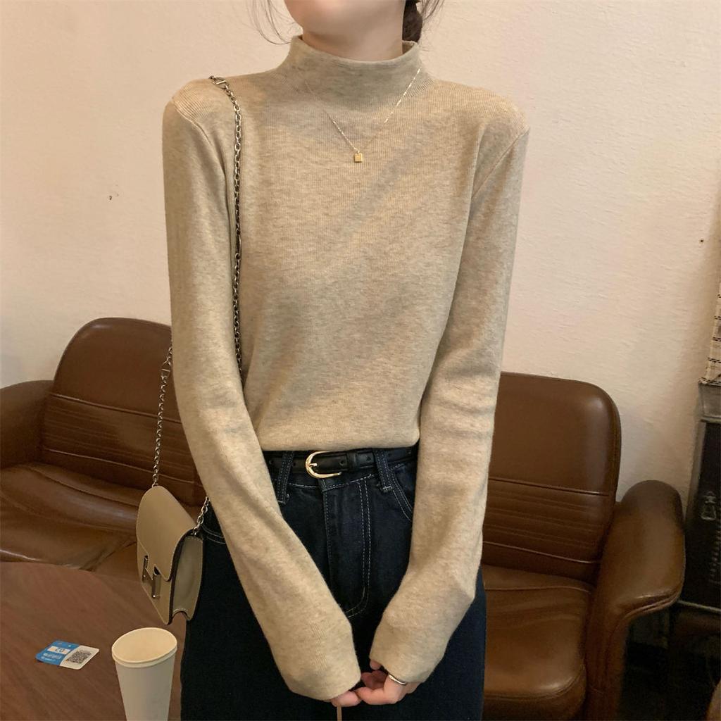 Autumn and winter warm small stand-up collar with knitted bottoming shirt inside, women's stacked long-sleeved solid-color versatile soft waxy