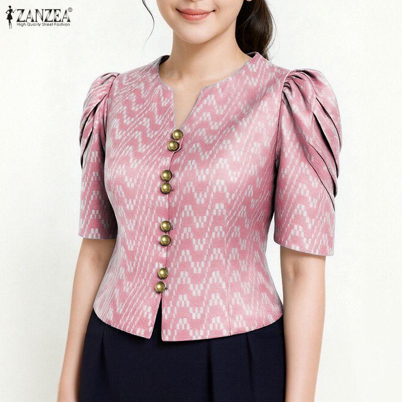 ZANZEA Lässige Sommerbluse mit V-Ausschnitt und kurzen Ärmeln für Damen