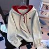 Women's Love Heart Embroidered Faux Layered Hooded Sweatshirt