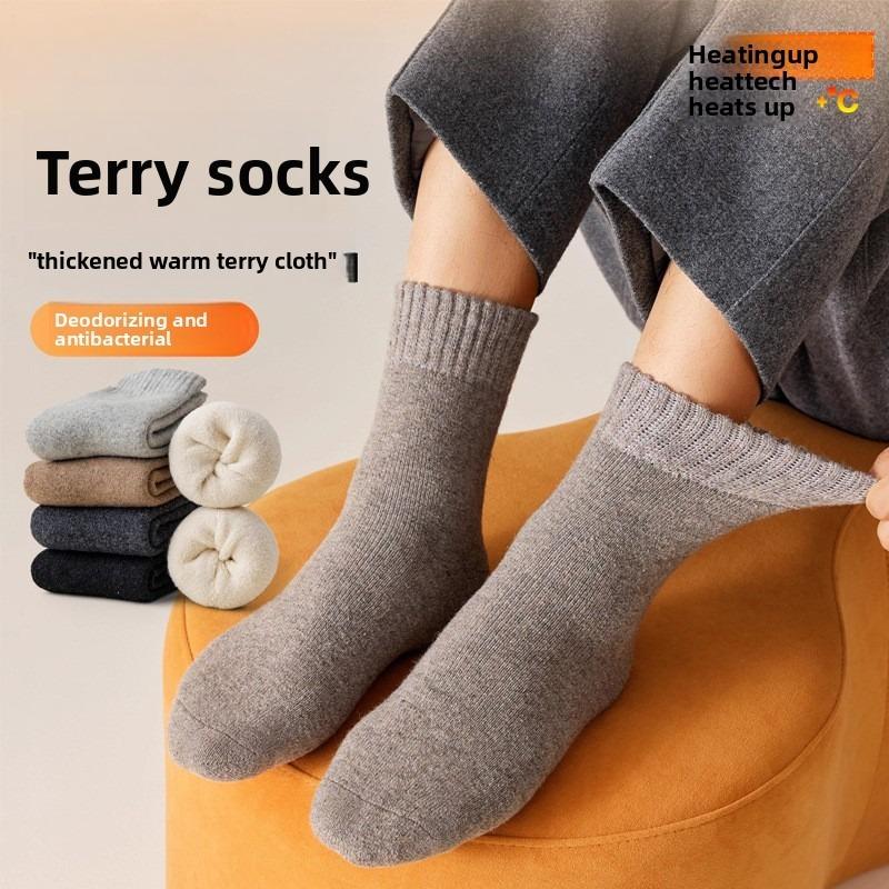 Herren Herbst und Winter Dicke Warme Haarring Kälte Solide Farbe Antibakterielle Deodorant Socken