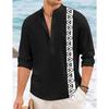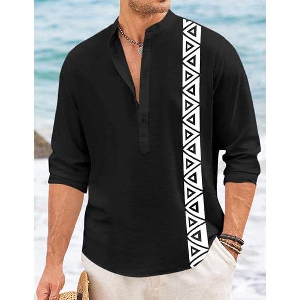 Herren Kurz-Kurta mit bedrucktem geometrischem Seitenteil | Baumwollmischung Langarm Ethno-Oberteil mit Stehkragen | Stilvoller Indo-Fusion-Kurta für Alltag, festliche Anlässe oder Freizeit