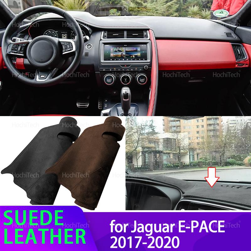 Auto Armaturenbrettmatte Schwarz/Braun Leder Armaturenbrett Abdeckung Wildleder Leder Armaturenbrett Matte Polster Sonnenschutz Zubehör für Jaguar E-PACE 2017-2020