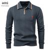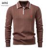 AMI 2025 Herbst und Winter Neuer Stickerei Herren Jacquard Pullover Herren Pullover Einfarbig V-Ausschnitt Strickpullover Herren