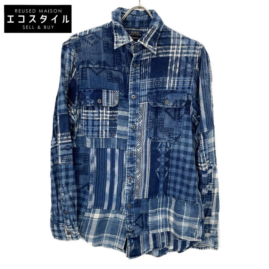 type: Indigo Cotton Linen Patchwork Native American Pattern Shirt