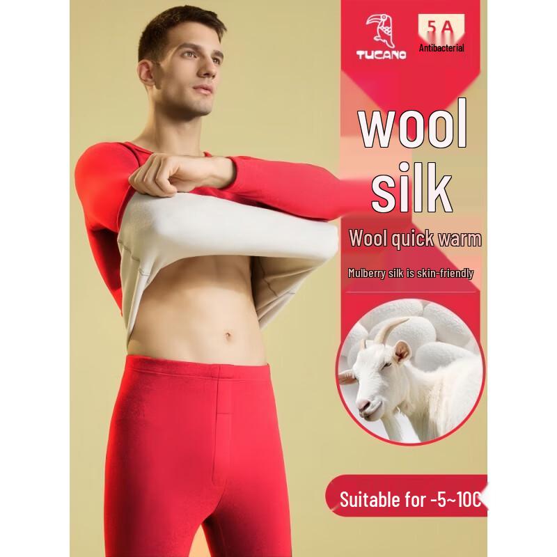 Specht Herren Rot Wolle Seide Thermounterwäsche Set