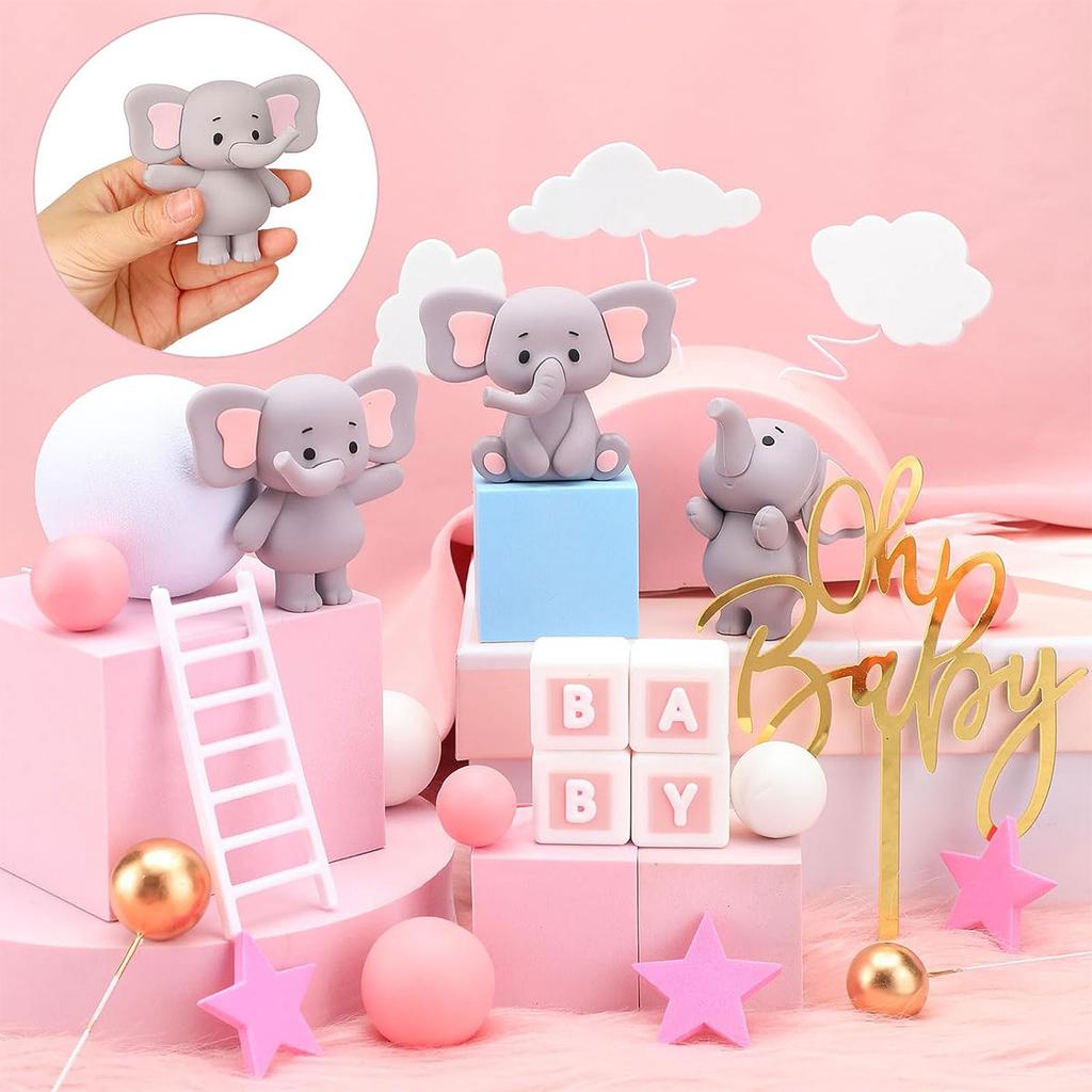 35-teiliges Set rosa Elefanten-Kuchenaufsätze, Mini-Kuchendekorationen, Cupcake-Aufsätze, rosa-weiße Perlenkugeln für Mädchen-Babyparty-Geburtstag