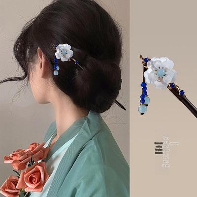 For Ladies Hanfu Tassel Wooden Hair Fork Flower Hair Sticks Hair Accessories Chinese Style Hairpin