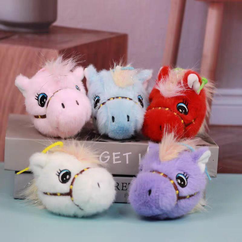 Cute simulated pony plush toy doll horse head doll keychain pendant zoo commemorative doll gift