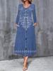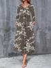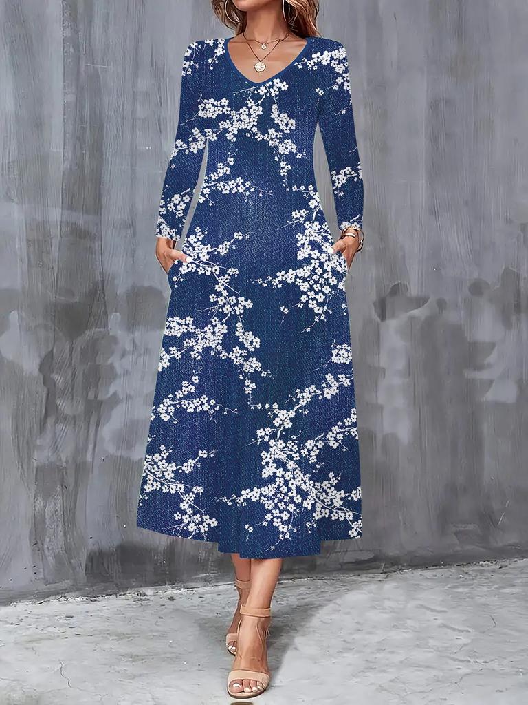 2025 Herbst und Winter Neue Damen Casual Mode Kleid Herbst 3D Blumenmuster Langarm V-Ausschnitt A-Linien Kleider