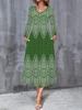 2025 Herbst und Winter Neues Damen Freizeitmode Kleid Herbst 3D Retro Druck Langarm V-Ausschnitt A-Linien Kleider