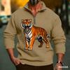 3D-gedrucktes Tiger-Löwen-Grafik Herren-Reißverschluss-Sweatshirt Vintage Tier-Muster Langarm-Pullover Outdoor Street Casual Kleidung
