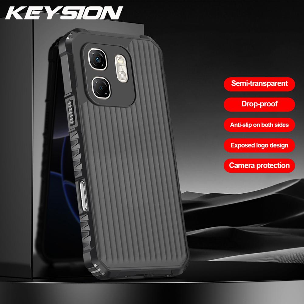 KEYSION Heavy Duty Shockproof Phone Case for Infinix Hot 50i Soft Silicone+PC Translucent Matte Back Cover for Infinix Smart 9