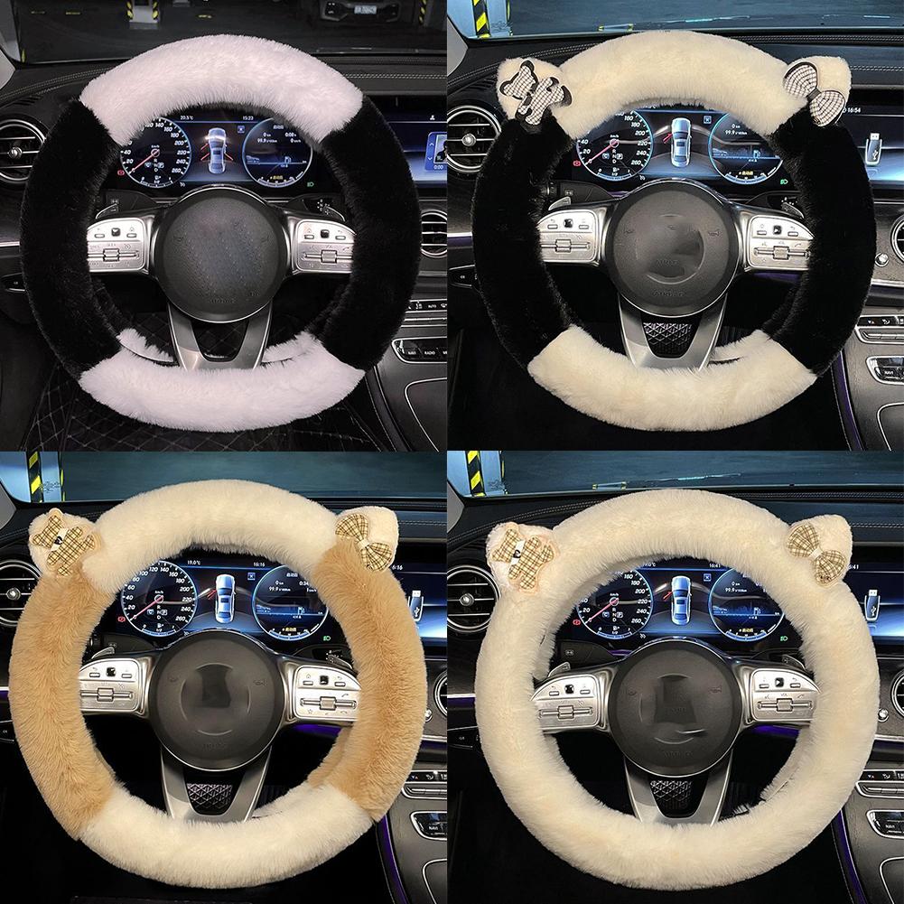Universelle Lenkradabdeckung für Autos Kleiner Bär Styling Dekor Lenkrad Elastische Abdeckungen für Männer Frauen Winter Plüsch Warm I6Z1