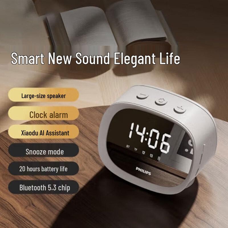 Philips TAS2909 Wireless Smart Alarm Clock Bluetooth Speaker with Makeup Mirror