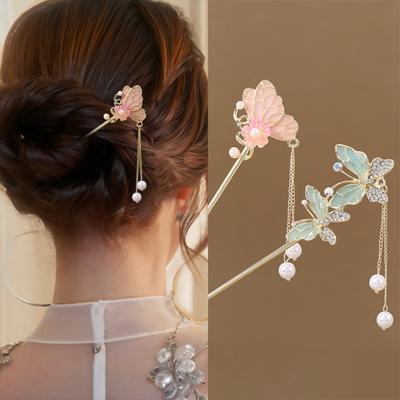 2-teilige elegante chinesische Stil Blume Schmetterling Quaste Haarnadel Vintage Haarwerkzeug Alltagskleidung Urlaubsgeschenk Frauenschmuck Haarschmuck