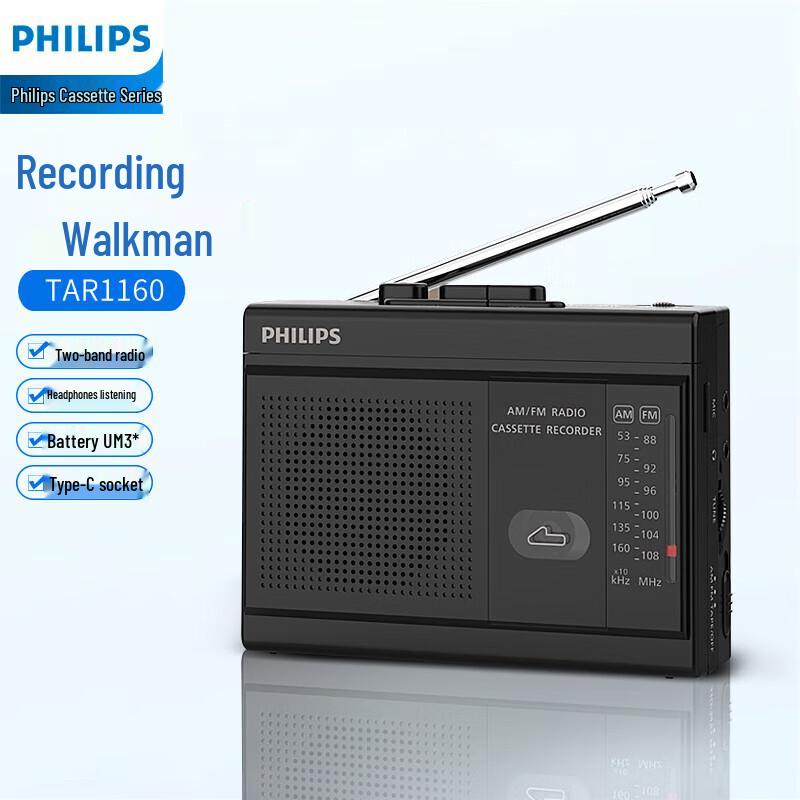 Philips TAR1160 Portable Cassette Player with Radio and Recorder