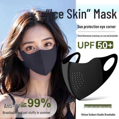Solid Color Sun Protection Face Cover Elastic Face Gini Mask Summer Ice Silk Mask Women/Girls