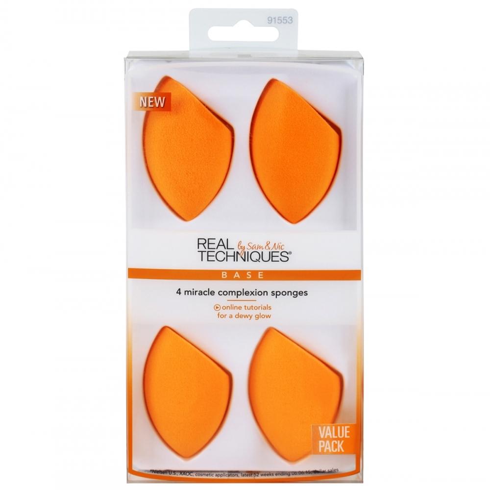 Real Techniques Sponges 4 Pack is a Miracle Complexion Sponge that enables various makeup applications, from achieving a dewy finish to flawless coverage. You can use the sponge damped for a hydrated feel or dry for enhanced coverage. The various curves and flat edges allow for convenient makeup application on detailed areas of the face. With 4 sponges in one pack, it is economical and hygienic to use.