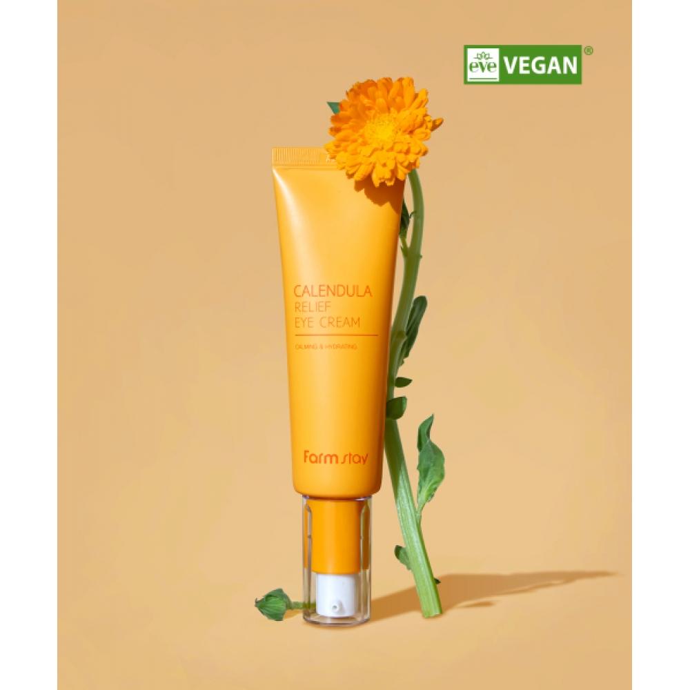 FARMSTAY Calendula Relief Eye Cream (50ml) is designed for sensitive skin around the eyes. This cream helps reduce puffiness and dark circles while providing powerful hydration and nutrition to improve skin elasticity. It is suitable for all skin types and offers a smooth, irritation-free experience.