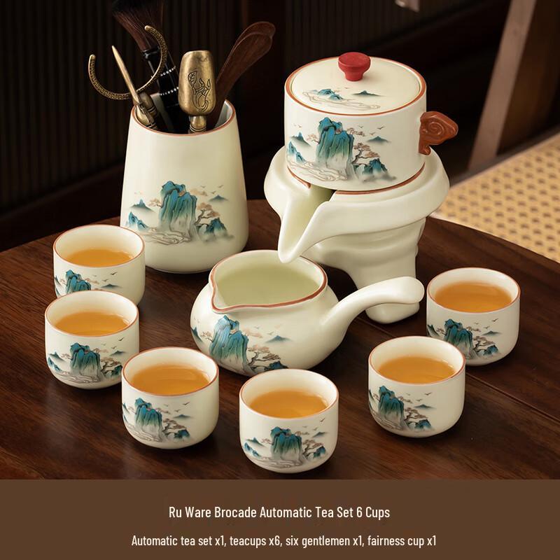 Ru Kiln Splendid Mountains and Rivers Automatic Tea Set