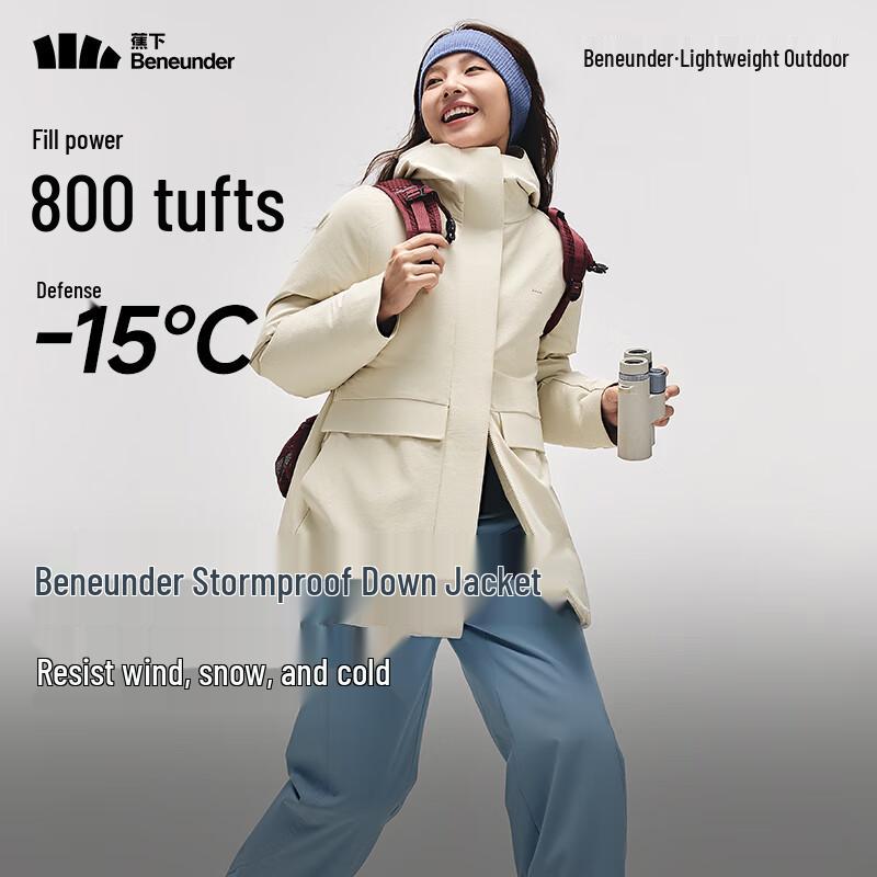 Beneunder Women's Windproof Hardshell Mid-Length Down Jacket