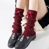 Bow Mid-Calf Sock Red Color Hosiery New Pile Sock Autumn and Winter