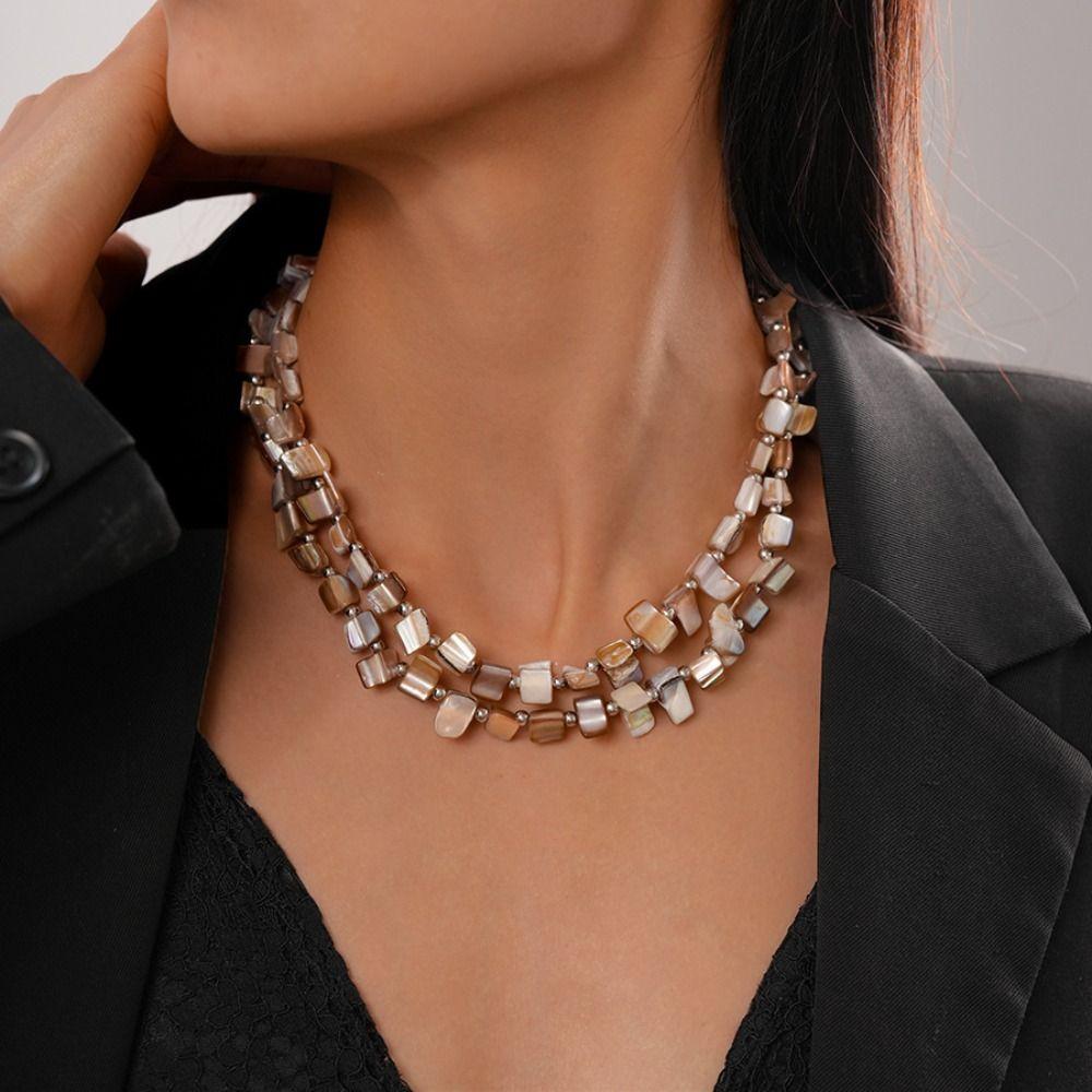 Runde Tigerauge-Stein-Halskette Künstliches Glas Retro-Ketten-Choker Stapelbare Halskette Maillard Perlen-Halsketten für Damen