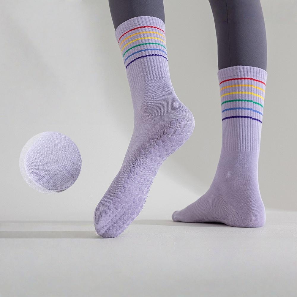 1 Pair Yoga Socks Anti Slip Silicone Mid-Calf Women Sports Socks 95% Cotton Sweat-Absorbent Anti-Odor Breathable Socks