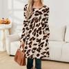 Damen Lässige Mode Langarm Grafikdruck Vintage Kleider mit Taschen