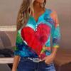 Damen T-Shirt mit Aufdruck, Knopfleiste, 3/4-Ärmel, modisch für den Alltag und das Wochenende, Basic, V-Ausschnitt, normales Oberteil