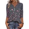 Damen T-Shirt mit Aufdruck, Knopfleiste, 3/4-Ärmel, für den Alltag, Wochenendmode, Basic, V-Ausschnitt, normales Oberteil