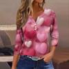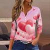 Damen Kragen Valentinstag Print Kurzarm T-Shirt Top