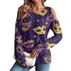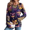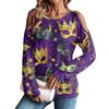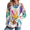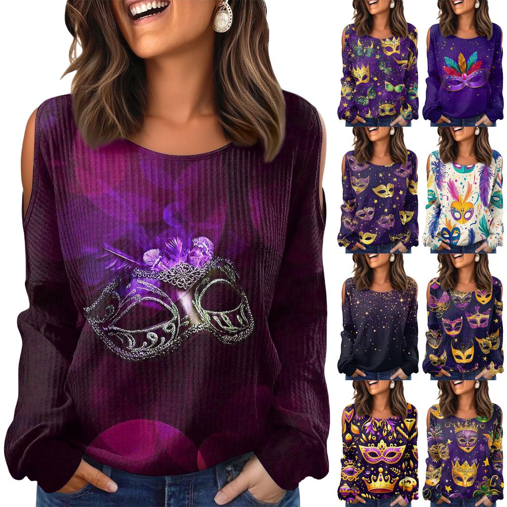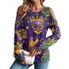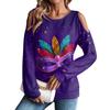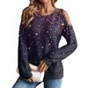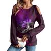 Damen Winter Oversized T-Shirt Modisch Schulterfrei Rundhals Vintage Blumendruck Pullover Langarm Oberteil