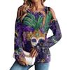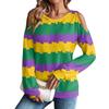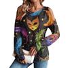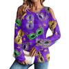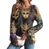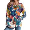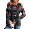 Damen Winter Oversized T-Shirt Modisch Schulterfrei Rundhals Vintage Blumendruck Pullover Langarm Oberteil