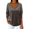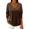Damen V-Ausschnitt Plüschkragen Langarm Pullover T-Shirt Top