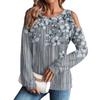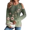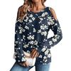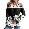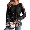 Damen Winter Oversized T-Shirt Modisch Schulterfrei Rundhals Vintage Blumendruck Pullover Langarm Oberteil