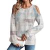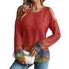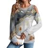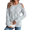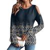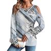 Damen Winter Oversized T-Shirt Modisch Schulterfrei Rundhals Vintage Blumendruck Pullover Langarm Oberteil