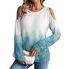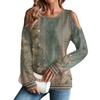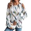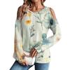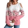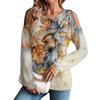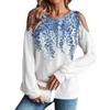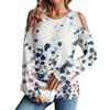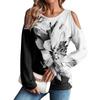 Damen Winter Oversized T-Shirt Modisch Schulterfrei Rundhals Vintage Blumendruck Pullover Langarm Oberteil