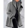 Stilvoller Damen Herbst Winter Mehrfarbiger Rundhals Lockerer Kapuzen Wollmantel Modische Warme Oberbekleidung Für Damen