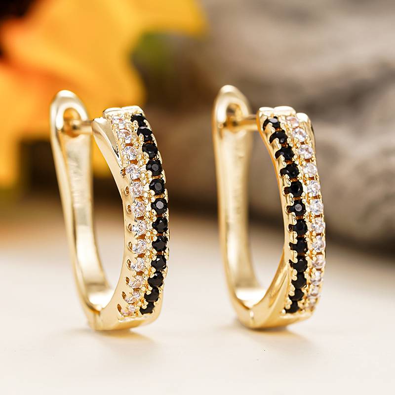 Huitan Elegant Women Hoop Earrings Gold Color Engagement Luxury Female Accessories Inlaid Black/White CZ Elegant Party Jewelry