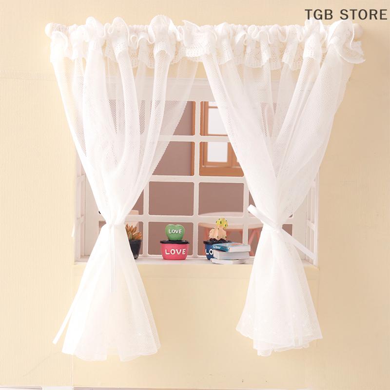 1:12 Miniature Curtain White Fabric Lace Door Curtain Window Decor Model Bedroom Living Room Furniture Decor Toy