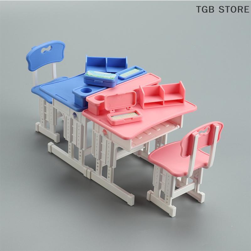 1Set 1/12 Mini Desk Chair Model Set Dollhouse School Supplies Simulation Dollhouse Decoration Micro Scene Construction Props