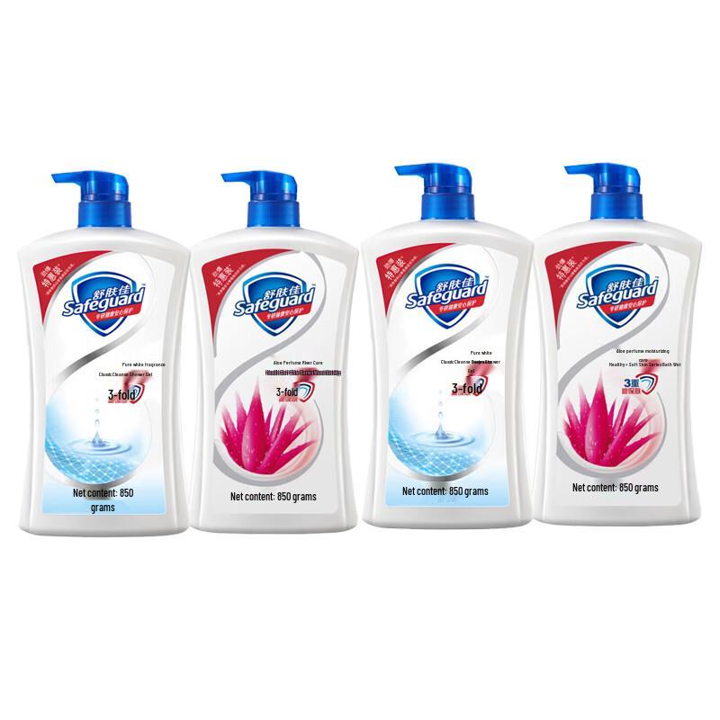 Safeguard Body Wash 4-Bottle Bundle (850g, Pure White & Aloe Vera)