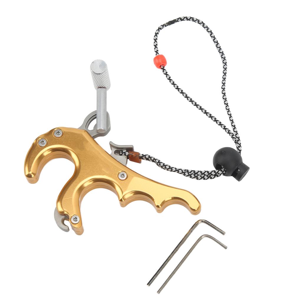 4-Finger Bogenschieß-Releasehilfe Griff Aluminiumlegierung Compoundbogen Daumenauslöser für Outdoor-Schießen Gold
