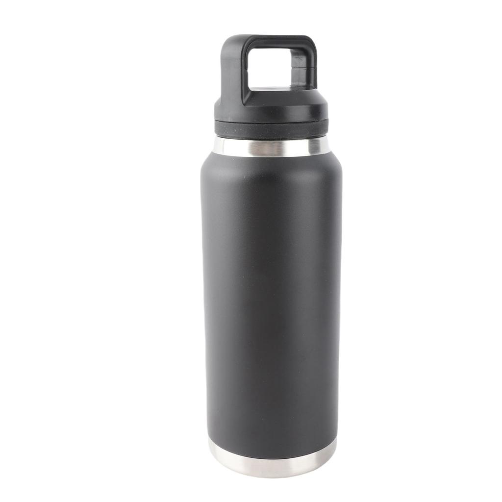 Sport Wasserflasche Edelstahl PP Tragbar Auslaufsicher Sportkessel für Outdoor Camping Fitnessstudio Reisen Büro Schwarz