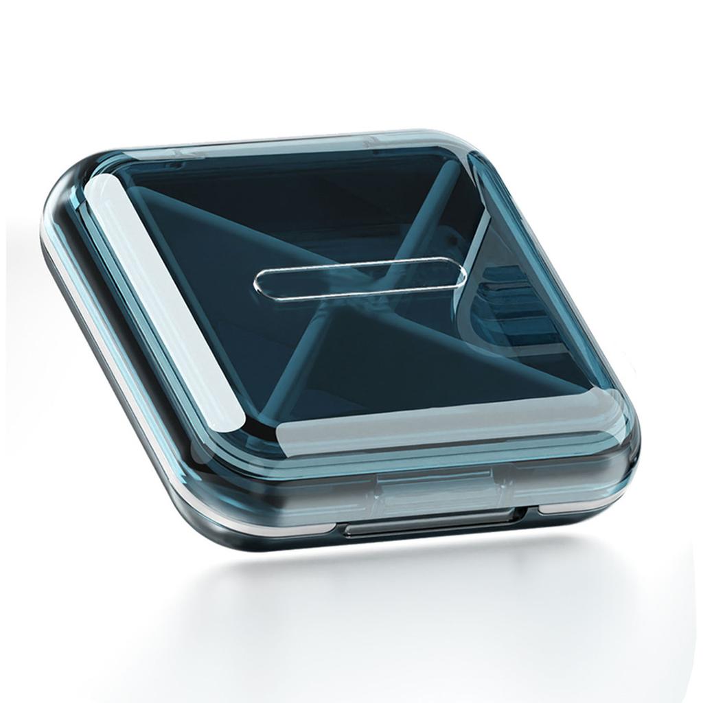 Tragbarer Medikamenten-L-Koffer Silikon Edelstahl Hohe Dichte Reise-Medikamentenkoffer für Vitamin Medikament Blau