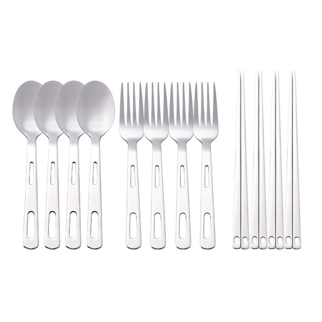 Camping Geschirrset Edelstahl Gabel Löffel Essstäbchen Tragbares Küchenutensilien-Set mit Aufbewahrungstasche für Draußen