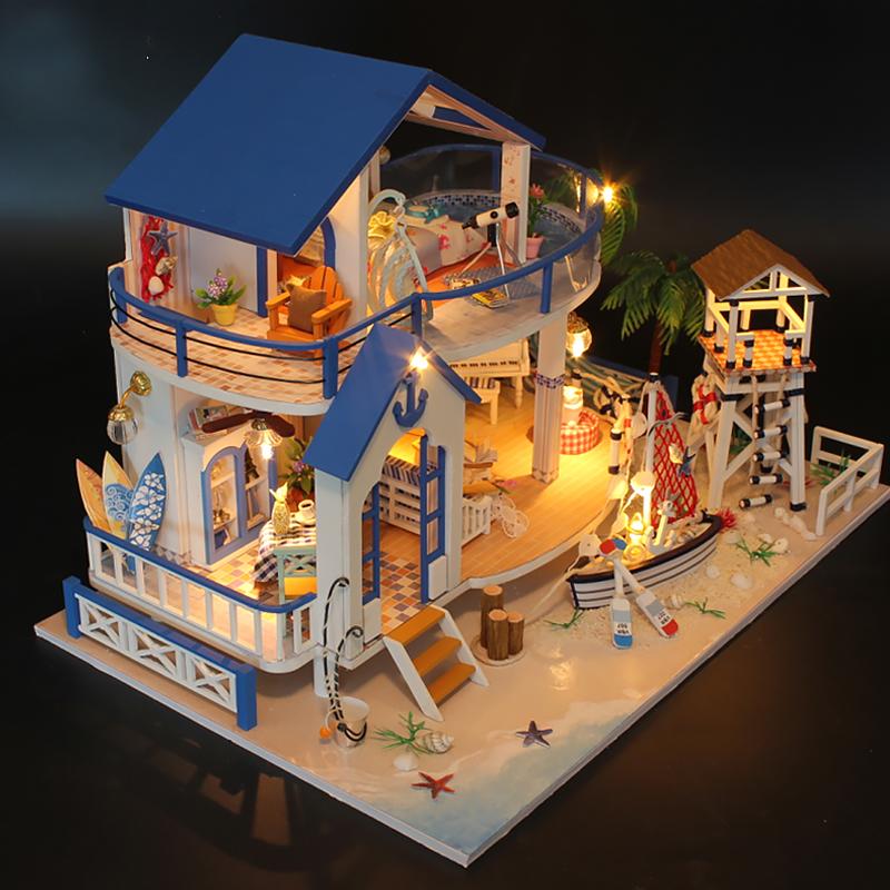 Wooden Mini Doll Houses Kit 3D Puzzle Assembly Building Model Toys Home Bedroom Decoration With LED Light Dollhouse For Kid Gift