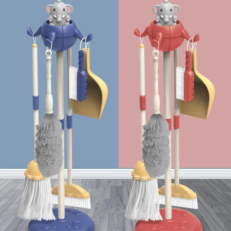 Children's Simulation Cleaning Tools Set - Cartoon Mini Housework Supplies Kit with Broom Mop Bucket, Kids Playhouse Toys
